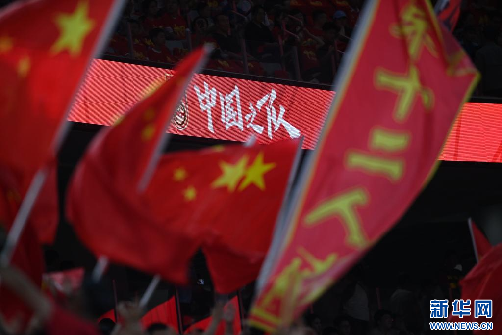 9月6日,中国队球员毛伟杰(中)比赛后向球迷致意。