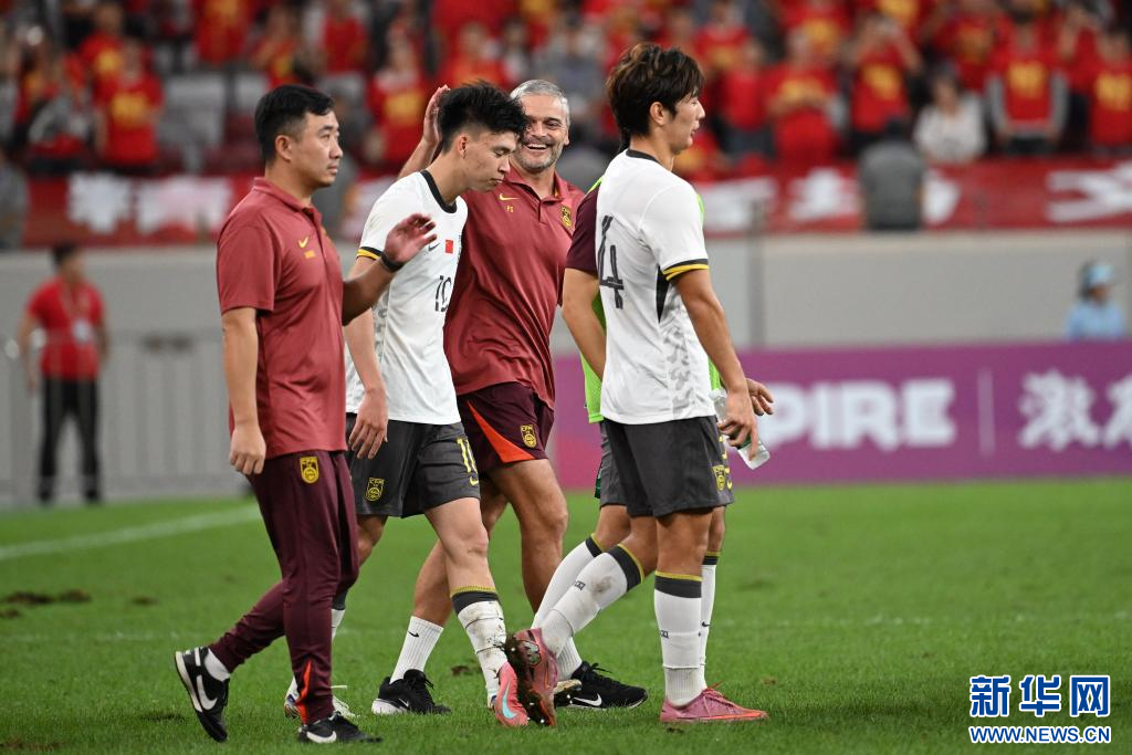 9月6日,中国队主教练安东尼奥·普切(左三)在比赛后。