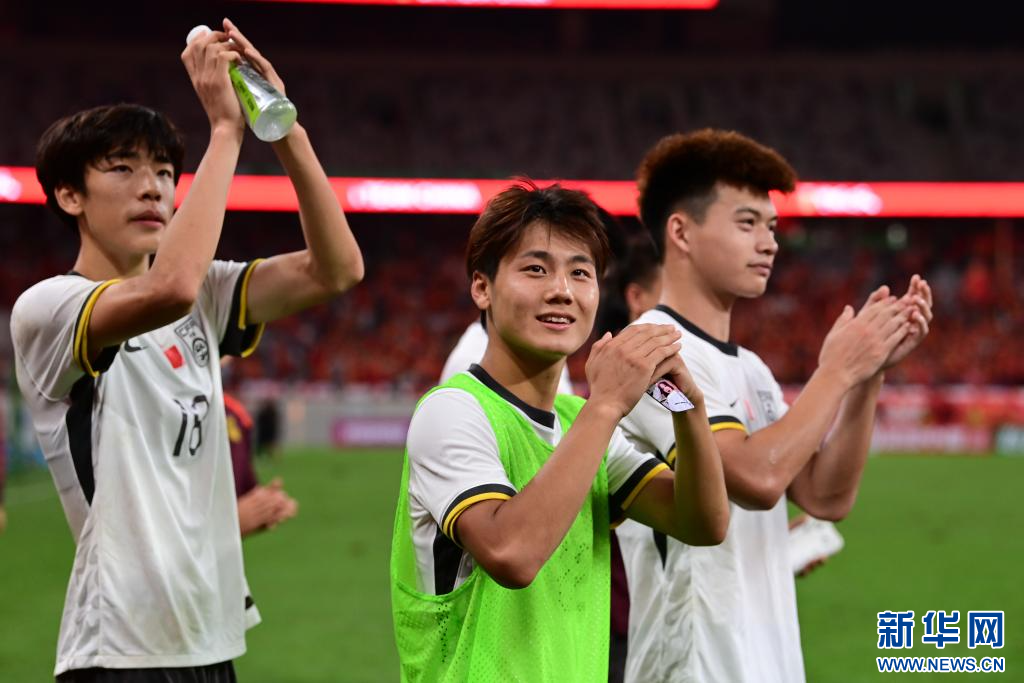9月6日,中国队球员王钰栋在比赛后与球迷互动。