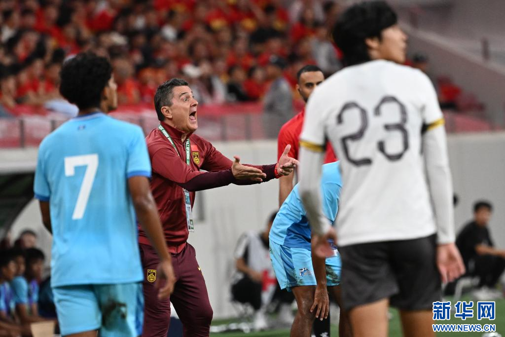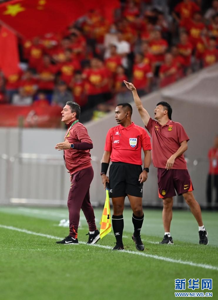 9月6日,中国队主教练安东尼奥·普切(左)在比赛中指挥。