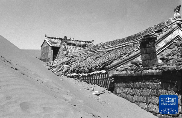 1953年拍摄的陕北鱼河堡房屋被沙压盖的情形。新华社记者武纯展摄