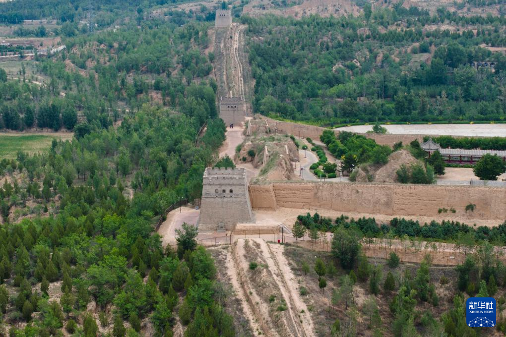 被绿色环绕的榆林镇北台(2024年6月6日摄,无人机照片)。新华社记者 邵瑞 摄