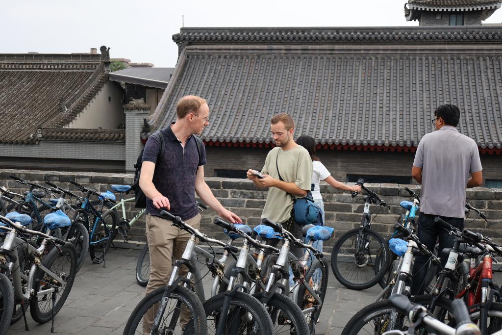 游客在西安城墙上租自行车骑行游览(2025年9月10日摄)。新华社记者 朱唯希 摄