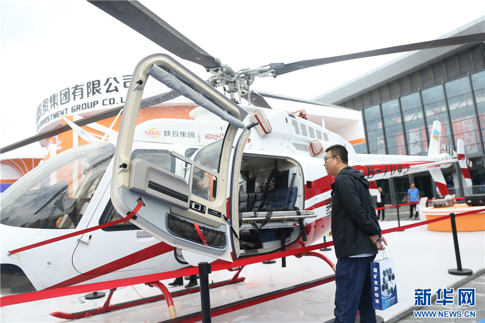 观众在展会现场参观一家参展企业展出的直升机。新华网 王智超摄