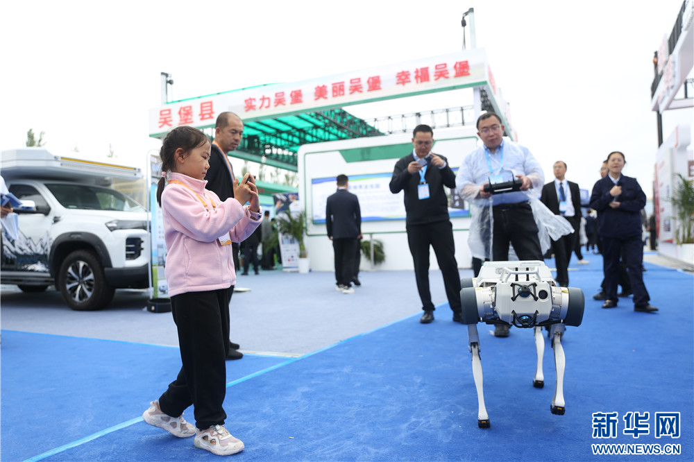 观众在现场拍摄参展企业展出的机器狗。新华网 王智超摄