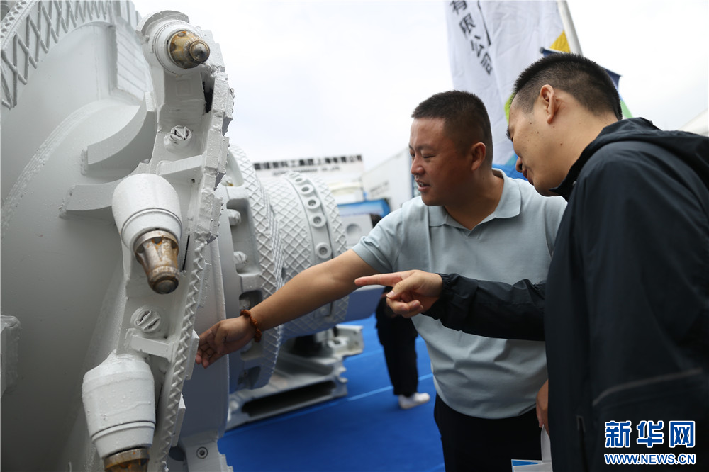 观众在展会现场参观一家参展企业展出的机械设备。新华网 王智超摄