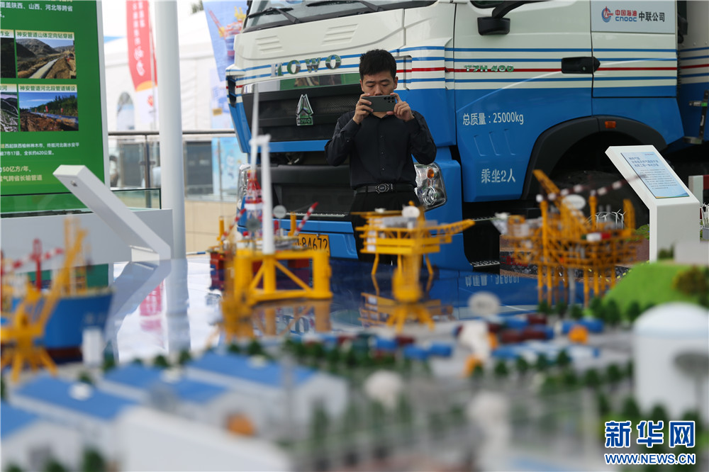 观众在展会现场拍摄一家参展企业展出的模型。新华网 王智超摄