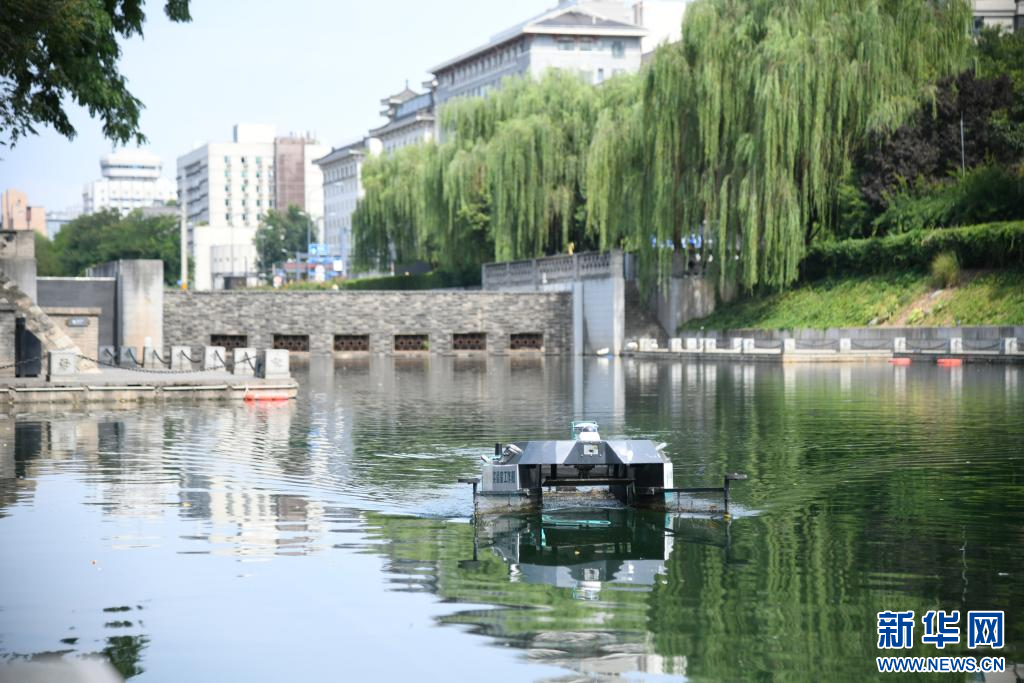 智能清洁船在西安护城河作业(2024年7月2日摄)。