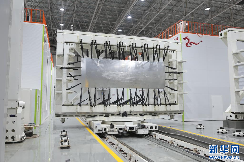 西安三角防务股份有限公司的蒙皮拉伸机。新华网 王智超摄pagebreak