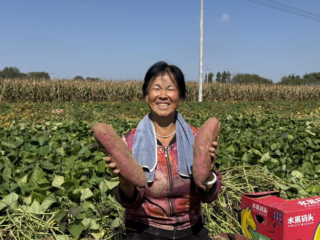 丰收的农户绽放笑颜。 吕晓慧 摄