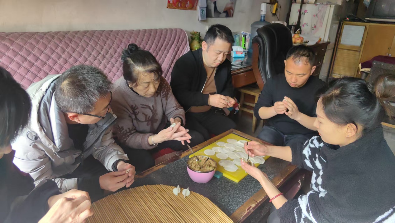 党员与社区独居老人一起包饺子