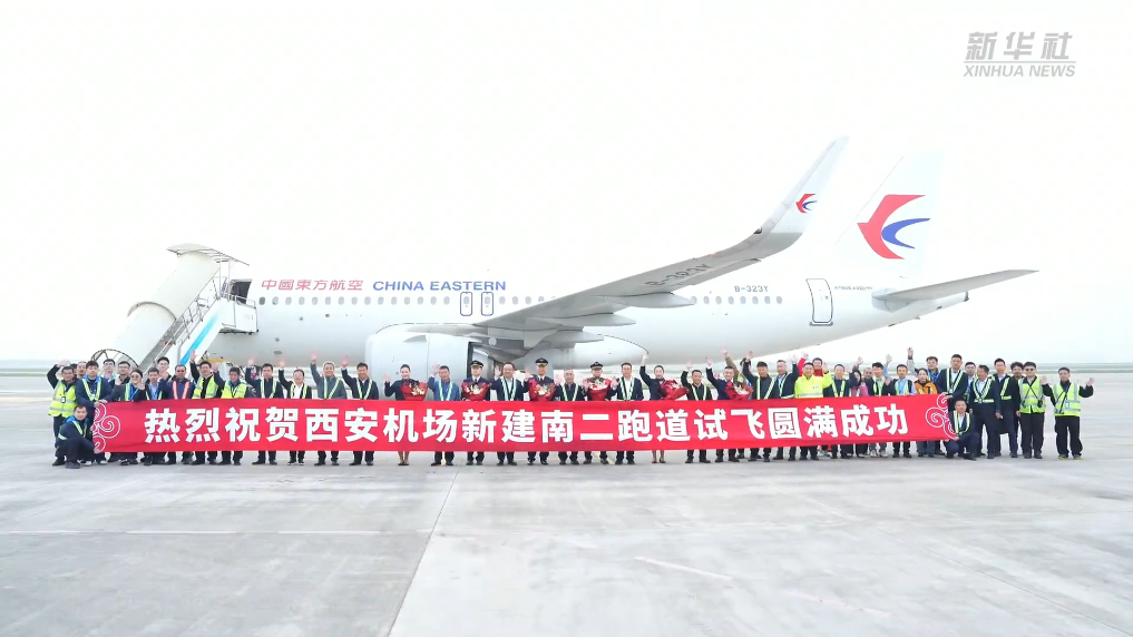 14日7时19分,中国东方航空股份有限公司一架空客A320型客机平稳降落在西安咸阳国际机场第三跑道。这标志着这个机场新建南二跑道飞行程序实地验证试飞取得圆满成功。