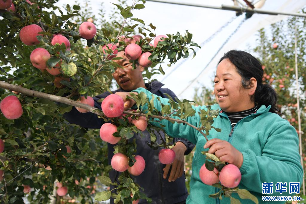10月17日,果农在延安市宝塔区桥沟街道烟洞沟村采收苹果。