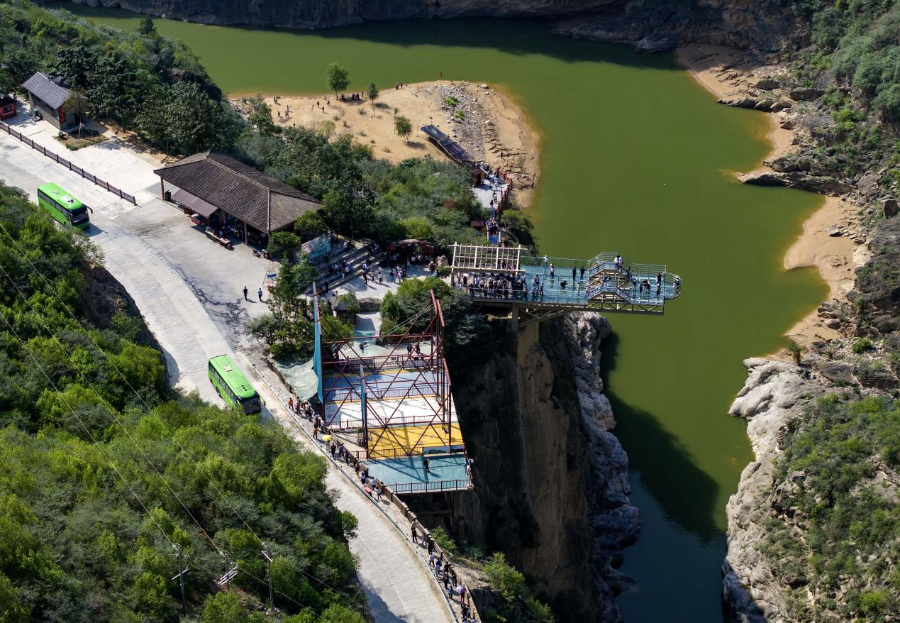 "湯德宏 攝pagebreak9月14日,游客在鄭國渠旅游風(fēng)景區(qū)游玩(無人機(jī)照片)。"