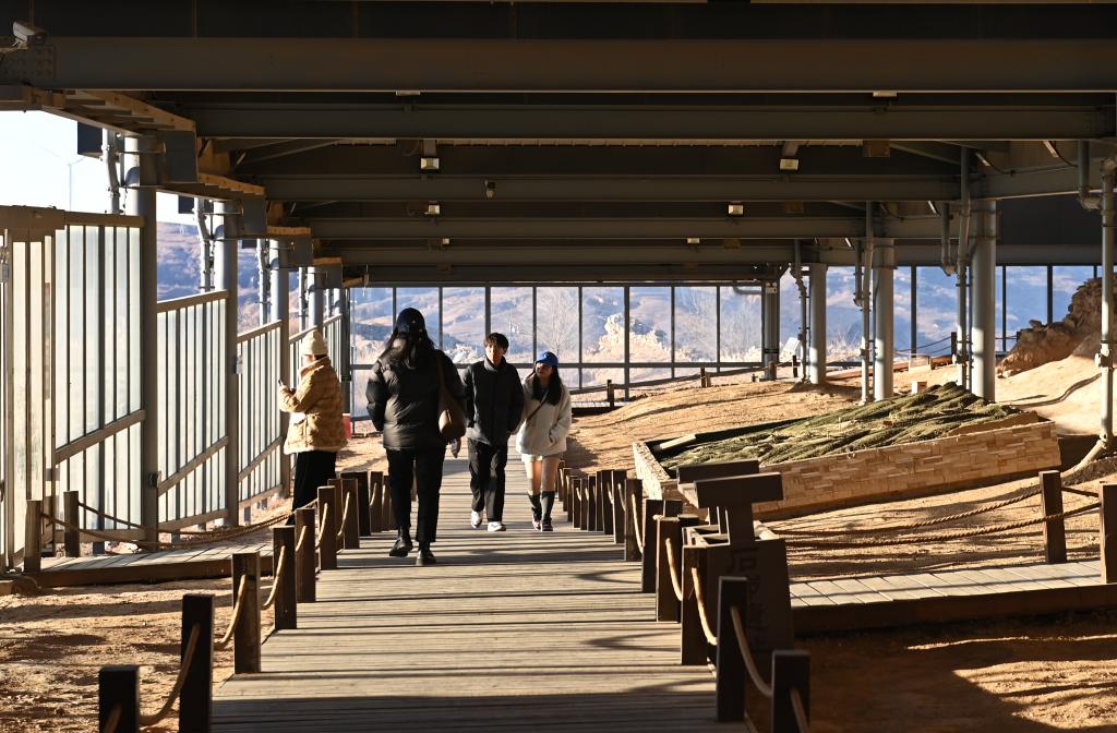"新華社記者 張京品 攝人射馬石雕中馬的雕刻風(fēng)格與甲骨文“馬”的形象十分相近不禁讓人浮想石峁文化和殷商文化的關(guān)聯(lián)關(guān)于石峁遺址出土的射馬人石雕的展示講解。"